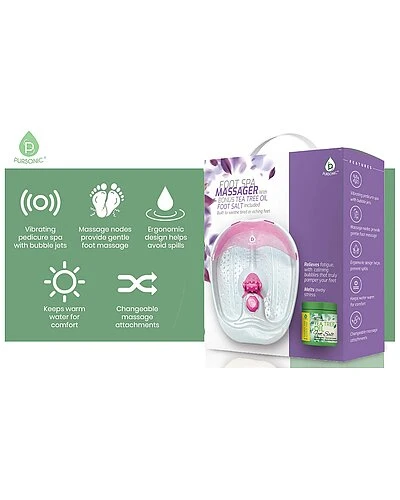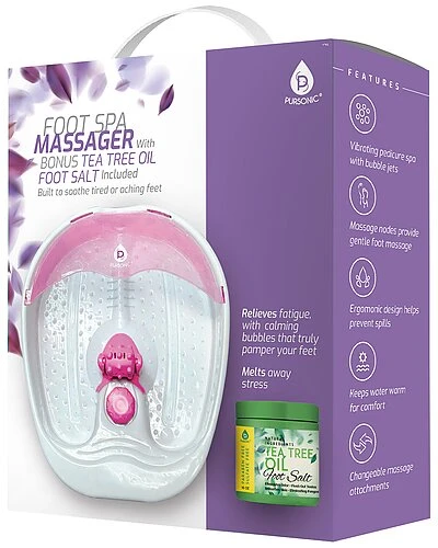 - RELIEVES FATIGUE: The Vibrating Foot Spa and Tea Tree Oil Foot Soak With Epsom Salt is the ultimate bundle and gift set!!! uses oxygen bubble jets to surround your feet to comfort your tired and achy feet. Use the changeable massage attachments to massage the bottoms of your feet and give you soothing relief from a long days work standing
